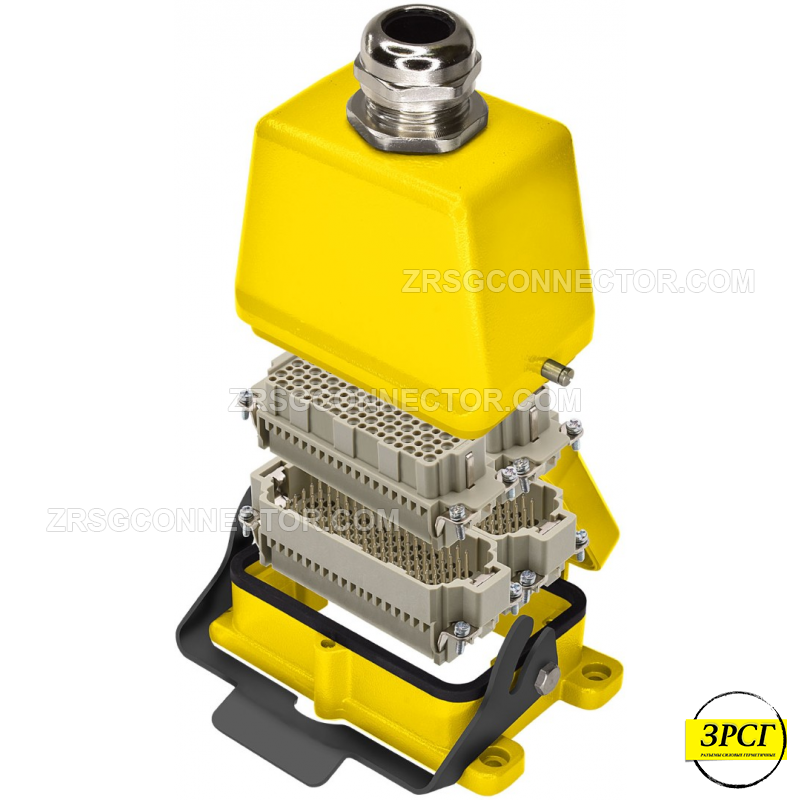 РСГM-216-10-БВ-КП-ПГ36 Разъем прямоугольный 216 pin, блочный встраиваемый, кабельный прямой кожух, сальник мет., PG36, 10 Ампер, 500 Вольт