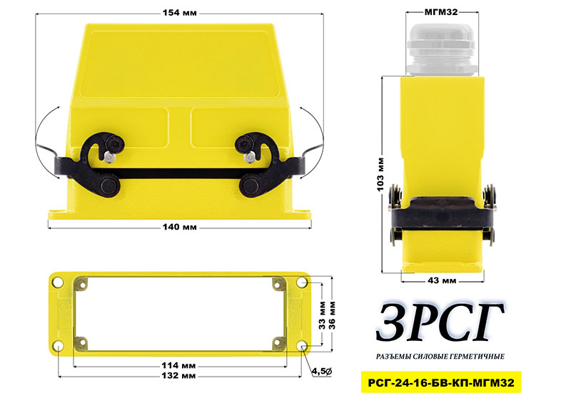- РСГ-24-16-БВ-КП-МГМ32 Разъем прямоугольный 24 pin, блочный встраиваемый, кабельный прямой кожух, сальник мет. МГМ32, 16 Ампер, 500 Вольт