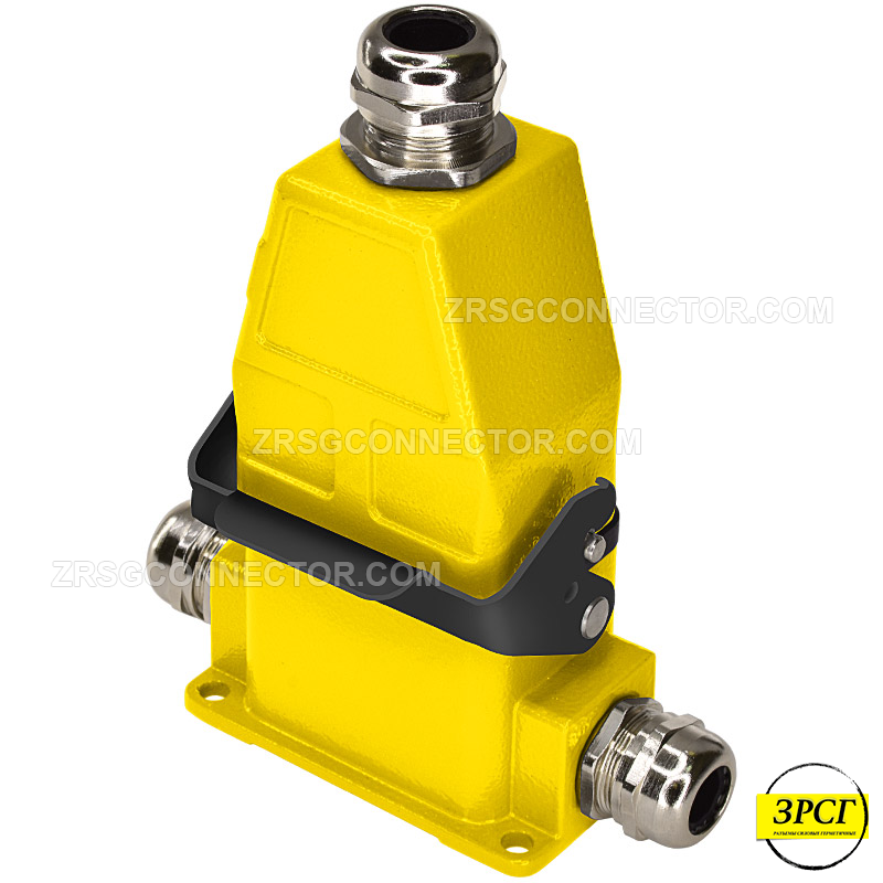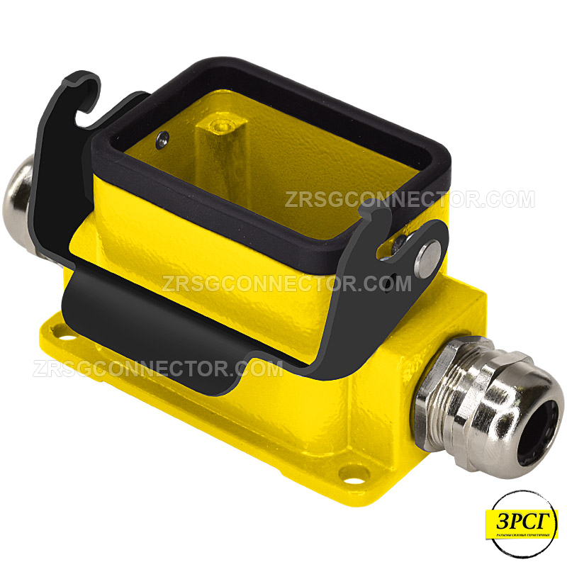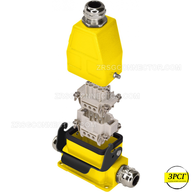 РСГ-6-16-БН-КП-МГМ25 Разъем прямоугольный 6 pin, блочный накладной, кабельный прямой кожух, сальник мет. МГМ25, 16 Ампер, 500 Вольт
